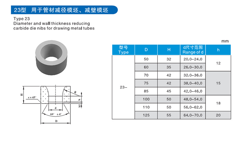 产品 >> 模具合金 > 管材拉制减壁减径模具合金